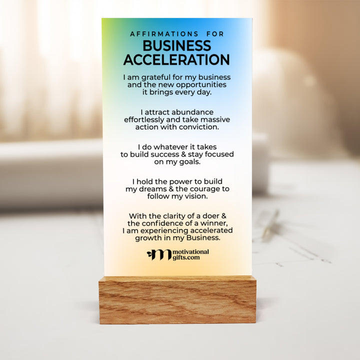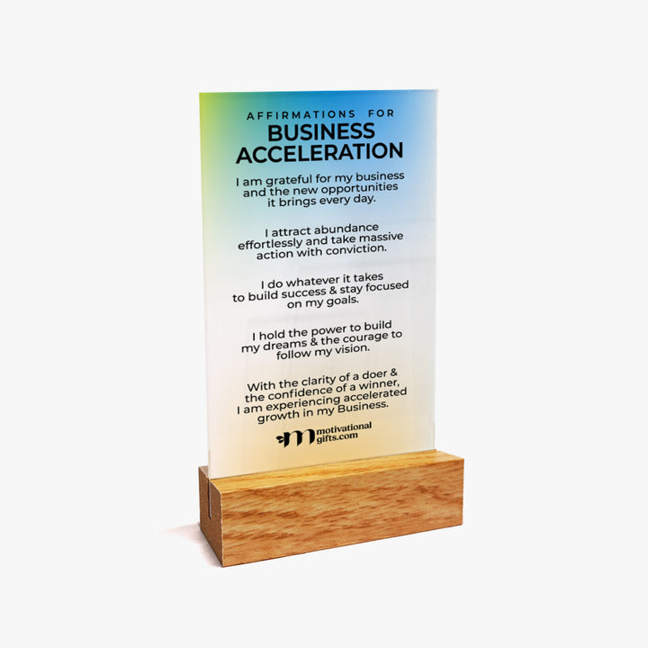 The Affirmation Glass Stand Display: Business Acceleration turns your workspace into a hub of motivation and abundance — where clarity meets ambition.