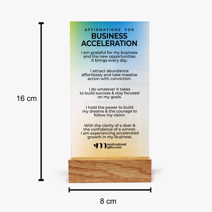 The Affirmation Glass Stand Display: Business Acceleration is designed to keep entrepreneurs, professionals, and dreamers motivated every single day. Featuring powerful affirmations for success and growth, this elegant glass display serves as a daily reminder that confidence, clarity, and focus are the keys to achieving extraordinary results.