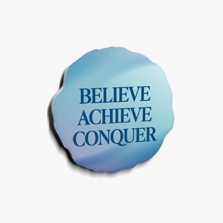 Fuel your motivation every day with the Positivity Ceramic Fridge Magnet: Dream Believe Achieve. Designed with a smooth round-edge finish, this magnet features the empowering words “Believe, Achieve, Conquer” on a calming blue gradient background. It’s a daily reminder that your dreams are within reach when you trust yourself and keep pushing forward.