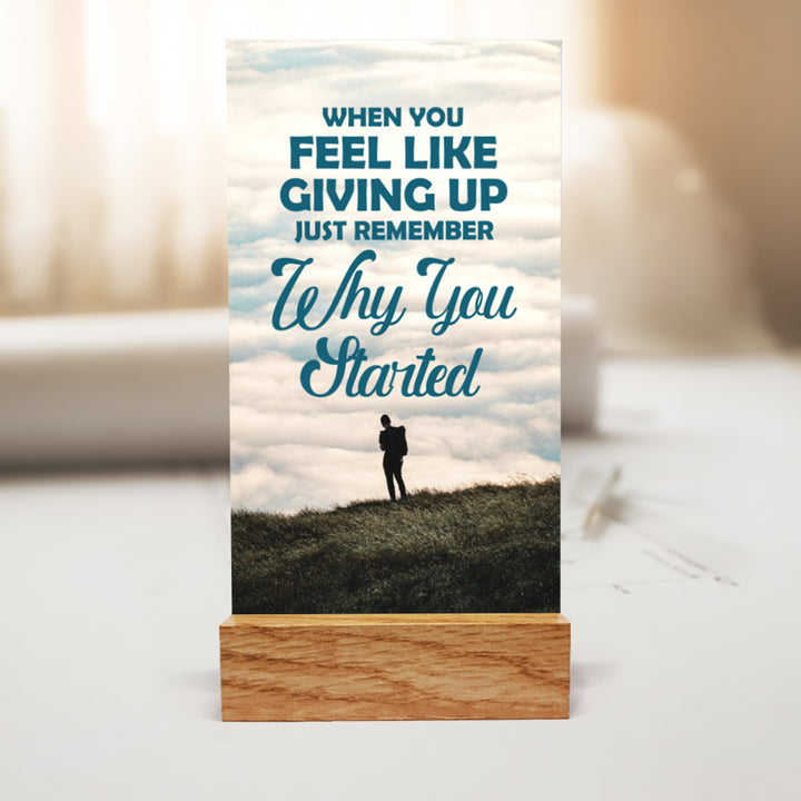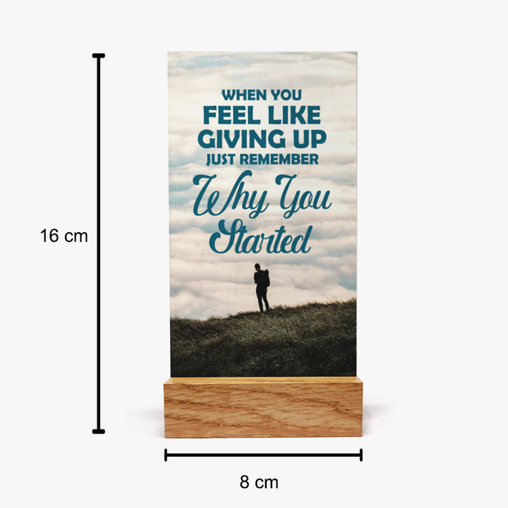 The Positivity Glass Stand Display: Why You Started is a daily visual reminder to push through challenges and stay focused on your purpose. Featuring the powerful message “When you feel like giving up, just remember why you started,” this inspiring décor piece helps you reconnect with your goals and renew your motivation every day.