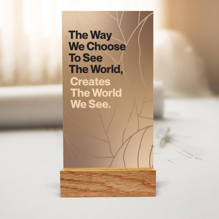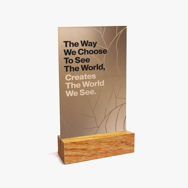 The Positivity Glass Stand Display: World You See is a daily reminder that how you choose to see the world determines the world you experience. Featuring the powerful quote — “The way we choose to see the world, creates the world we see.” — this elegant display encourages mindfulness, gratitude, and optimism in every moment.