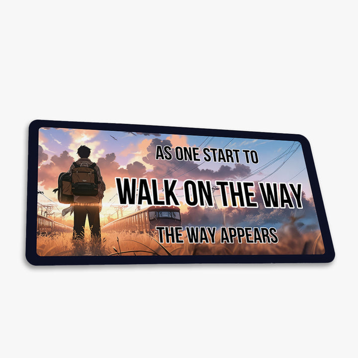 With a scenic railway journey at sunset and a lone traveler silhouetted in motion, this design stirs a sense of direction, faith, and hope. Stick it to your fridge, locker, or workspace — and let it encourage progress, one step at a time.