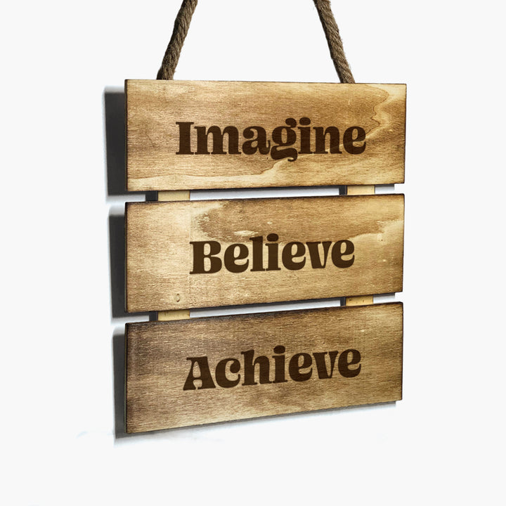 Productivity Wooden Hanging: Imagine Believe Achieve